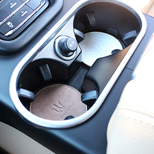 キョン革の吸水速乾性と、肉厚のクッション性を生かした車用のコースター(2枚セット)。