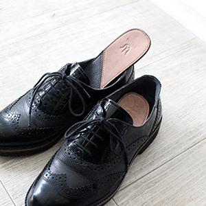 Shoe insoles that are made with luxurious muntjac leather and have excellent water absorption, quick drying, breathability, and water resistance.The moderate thickness has cushioning properties, and the design goes well with leather shoes.