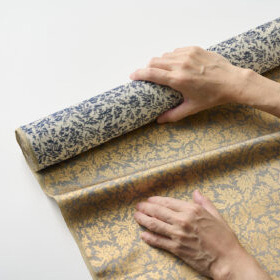 京都の織物・掛軸の表具に使われる表装裂を使用した額縁(がくぷち)。縦横兼用で使え、壁に貼ることもできます。