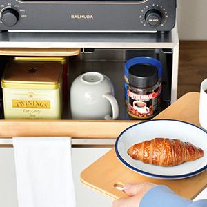収納に便利なトースターラックに、パンを乗せるトレーを2枚プラス。