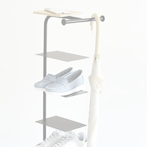 Add storage space to the shoe rack where you can hang an umbrella stand, shoe horn, etc.