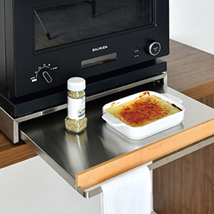 オーブンやレンジの下に、調理スペースを簡単に拡大できるトレーをプラス。