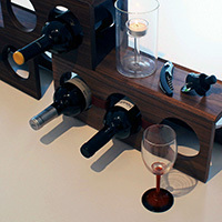 布を挟みジョイントされた3枚の板は、手軽に組み立てる事ができ、使わない時は 嵩張らず収納できる持ち運びにも便利なワインラックです。 V 溝を利用する事でスタッキングが可能になり、スライドさせたり 天板を活用する事で様々な組み合わせのディスプレイを可能にします。