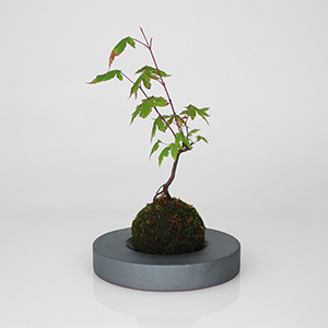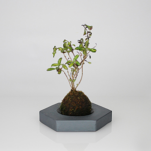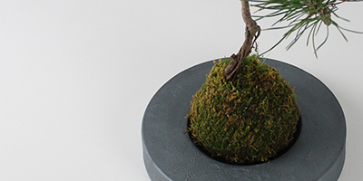 渓流の岩で育つ苔のように、窪みで苔玉をつつみ込んでくれます。