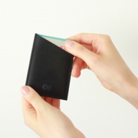 Oli(折)は表と裏が違う色で構成される「折紙」がモチーフ。折紙のように1枚の革を折り重ねる事で出来るスペースを利用した構造になっています。このOliシリーズは薄く鞣した革を2枚貼り合わせ型抜きし、折加工を施しています。革小物は通常パーツごとに型抜きされますが、Oliシリーズは1つの型で完成させ職人により手作業で縫製しています。従来の商品とは異なり側面から見える2色が重なり合うシルエットの美しさも特徴です。薄くて軽いOliシリーズはスマートにポケットに収まり、斜めにカットされたポケットは取り出しやすさはもちろん、配色のバランスも計算されています。