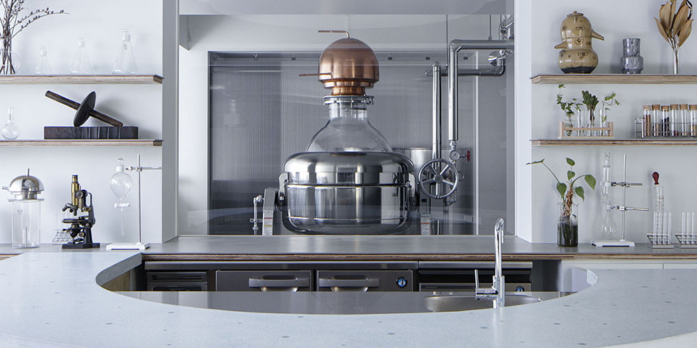 I was in charge of designing the distiller. I redesigned the Tuburo distiller an instrument used for medicinal oils and liquors in the Edo period, into a structure that can be seen inside by using a giant flask of laboratory glass. The Fukagawa Distillery is primarily a B2B tasting and business meeting space.