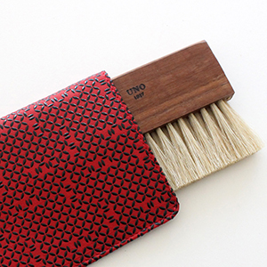 The stand brush pursues "beauty of use" with excellent practicality by traditional techniques. Performance and durability due to natural bristles and hand-implanted technology, and the use of leather makes it lightweight and comfortable to the hand. It goes well with the interior, and by letting it stand on its own, it does not take up much space and the tip of the hair does not touch the base. It is a product that you can use regularly while enjoying the aging unique to natural materials.